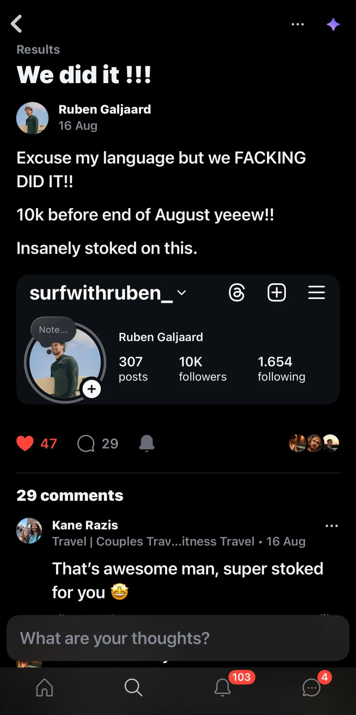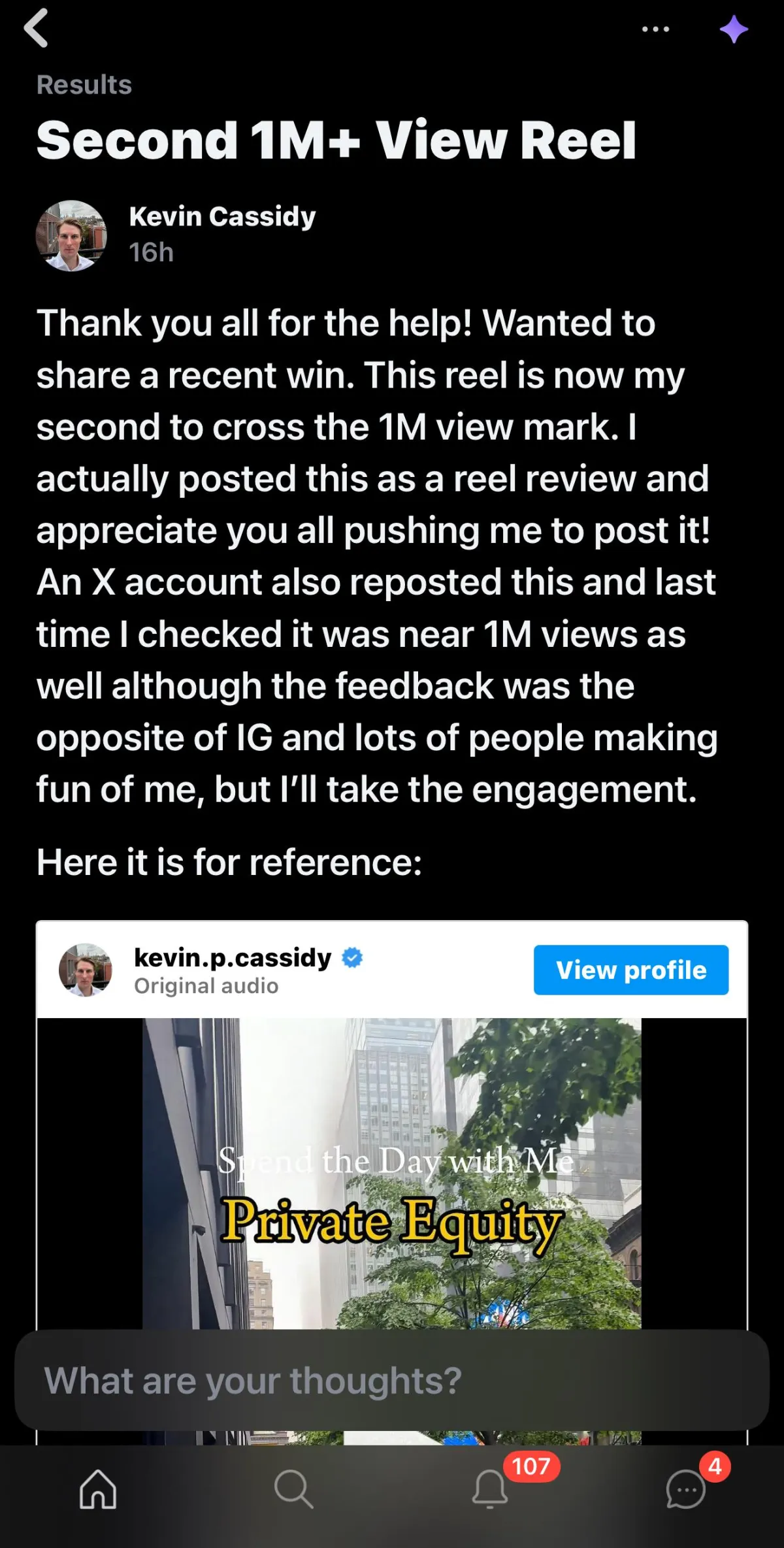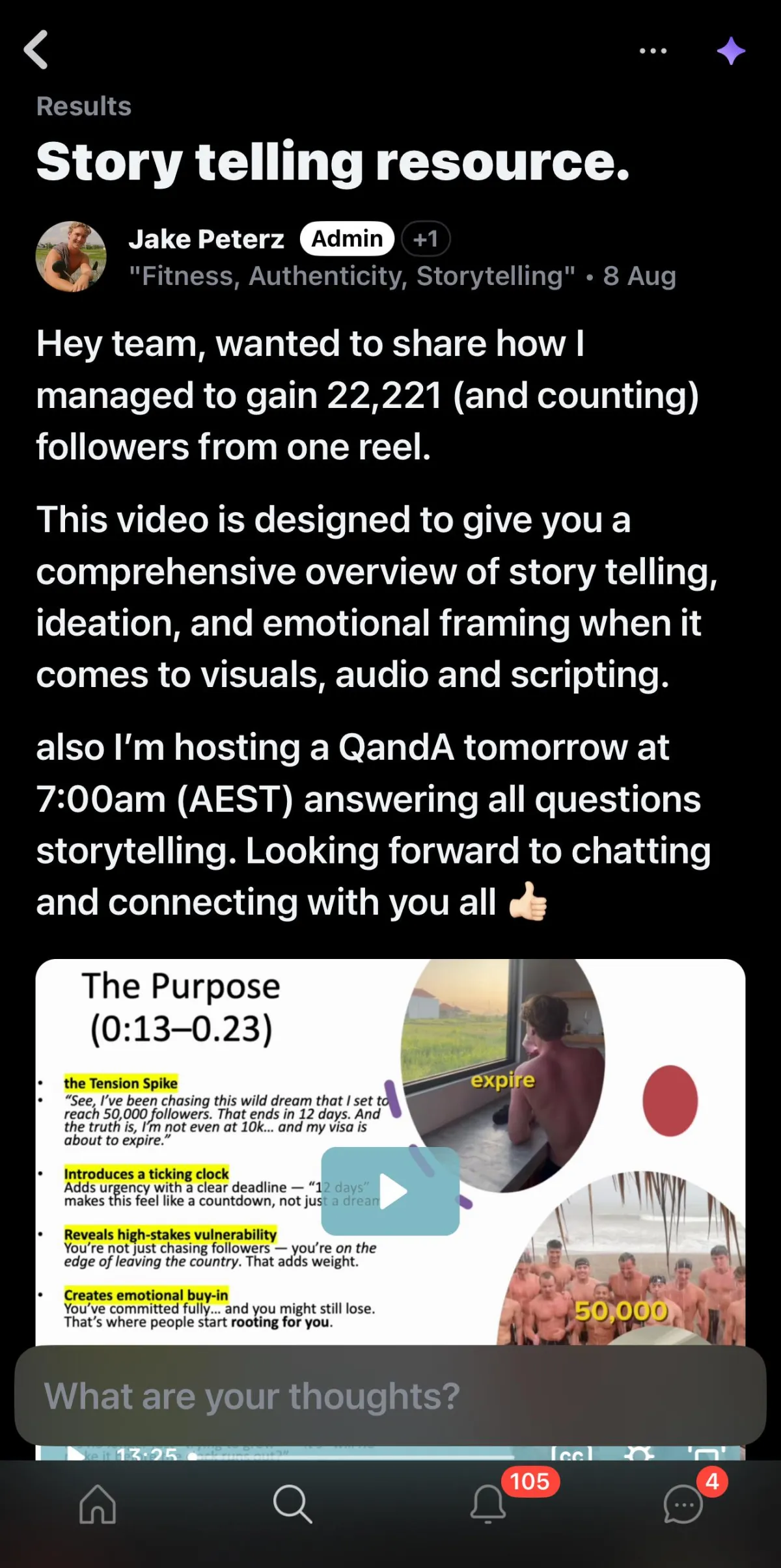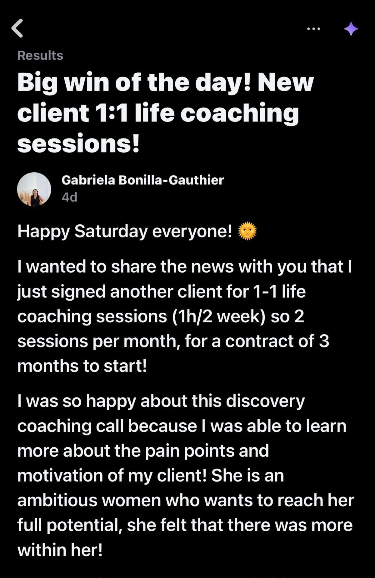 "These last 30 days have been crazy. 4K on IG and 22K on TikTok. Getting people coming at all angles just from the advice on how to setup an account. Being able to ask you, Ned, and Zedan questions on the weekly Q&A makes this a lot less lonely path.