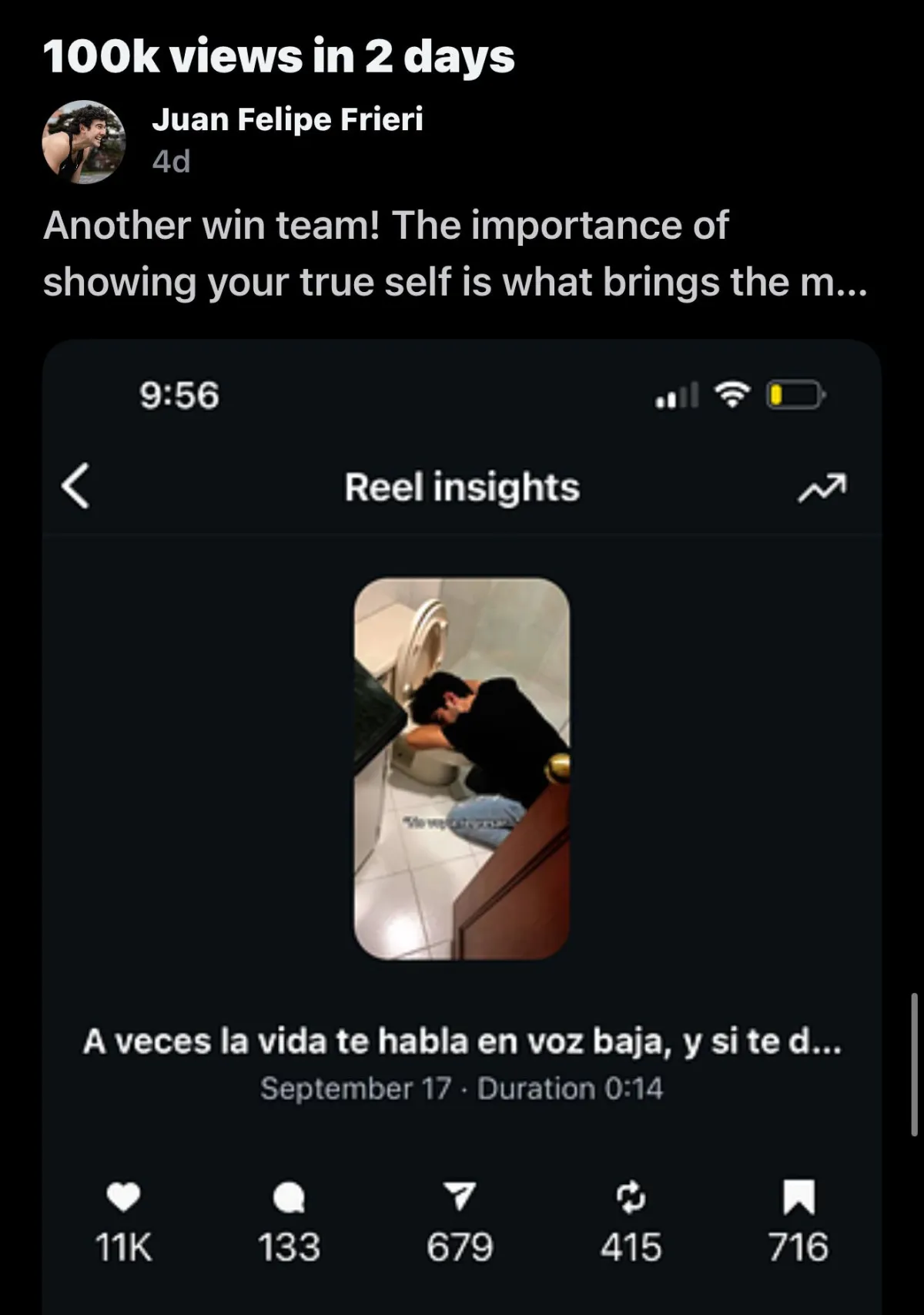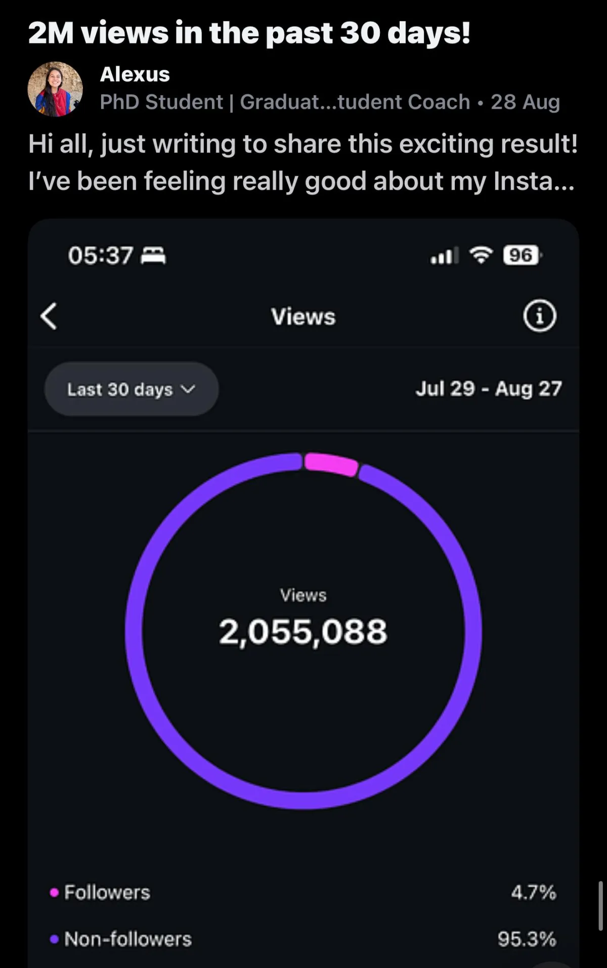 After 3 years of trying to grow without success, she joined Amplify and finally found the formula that works. In just 12 days, she grew from 146 followers to over 1,000, with her first post hitting 21K+ views. Through calls and guidance from the team, she gained clarity, structure, and momentum.