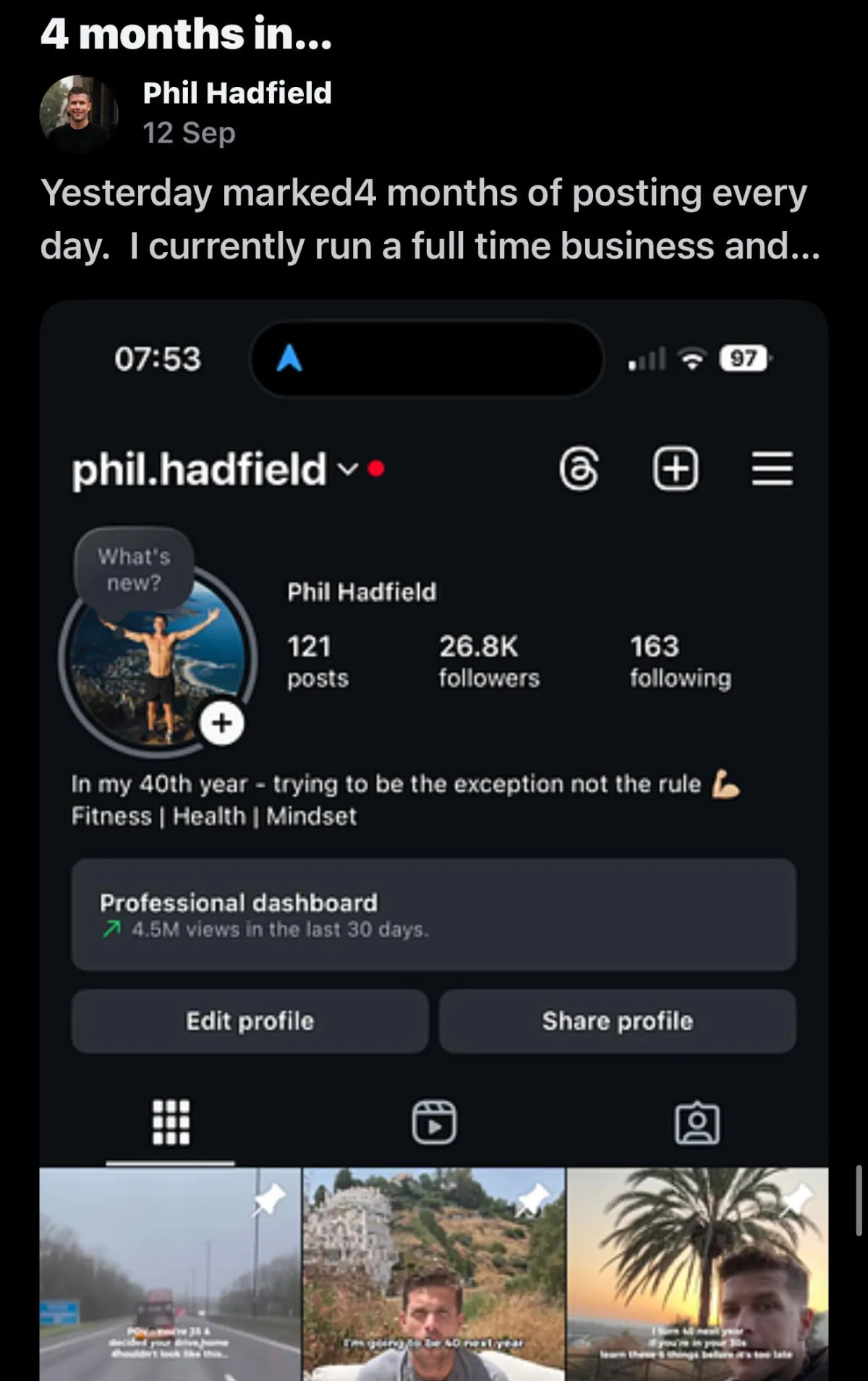 When I first started creating content, I was just documenting my 75 day hard journey.
