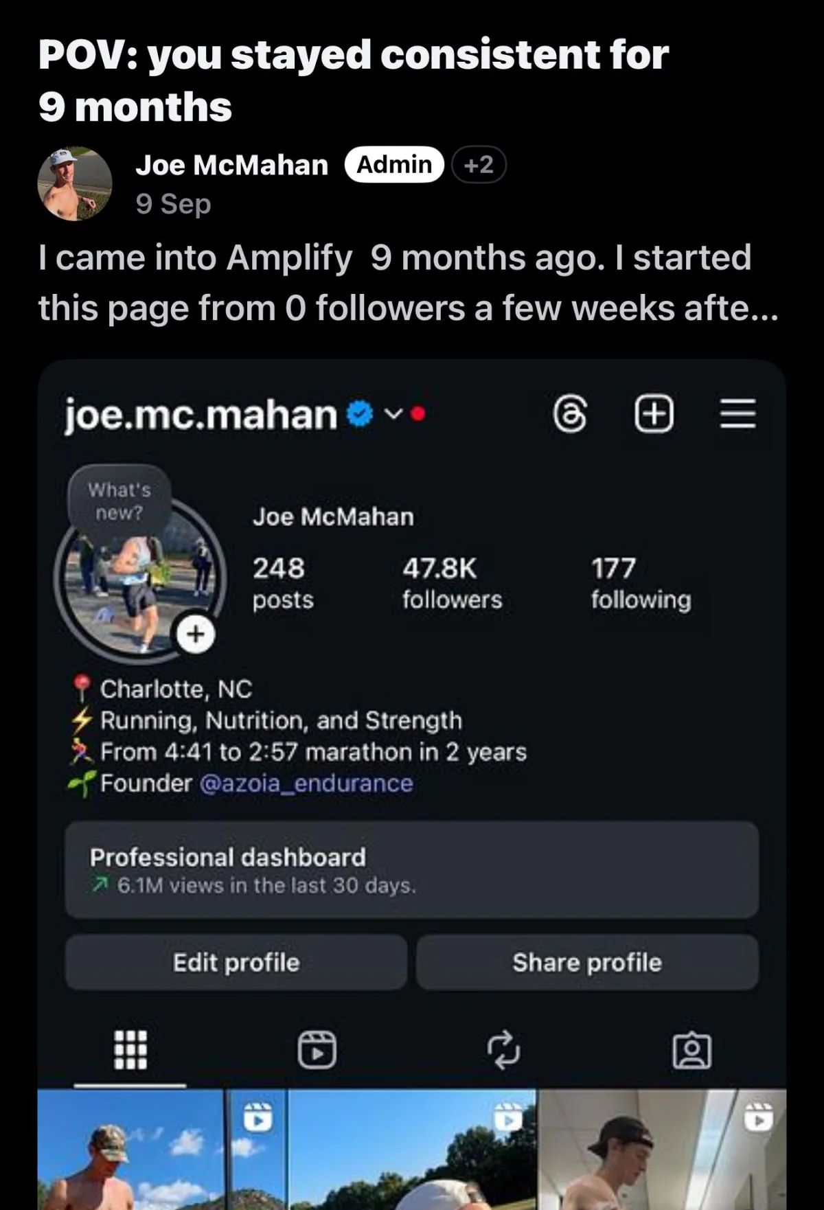 In just 90 days of joining Amplify, Joe turned his passion for running into a online coaching system that funds his start up @azoia_endurance. Now he also helps creators turn their stories into growth and monetisation inline with their passions.