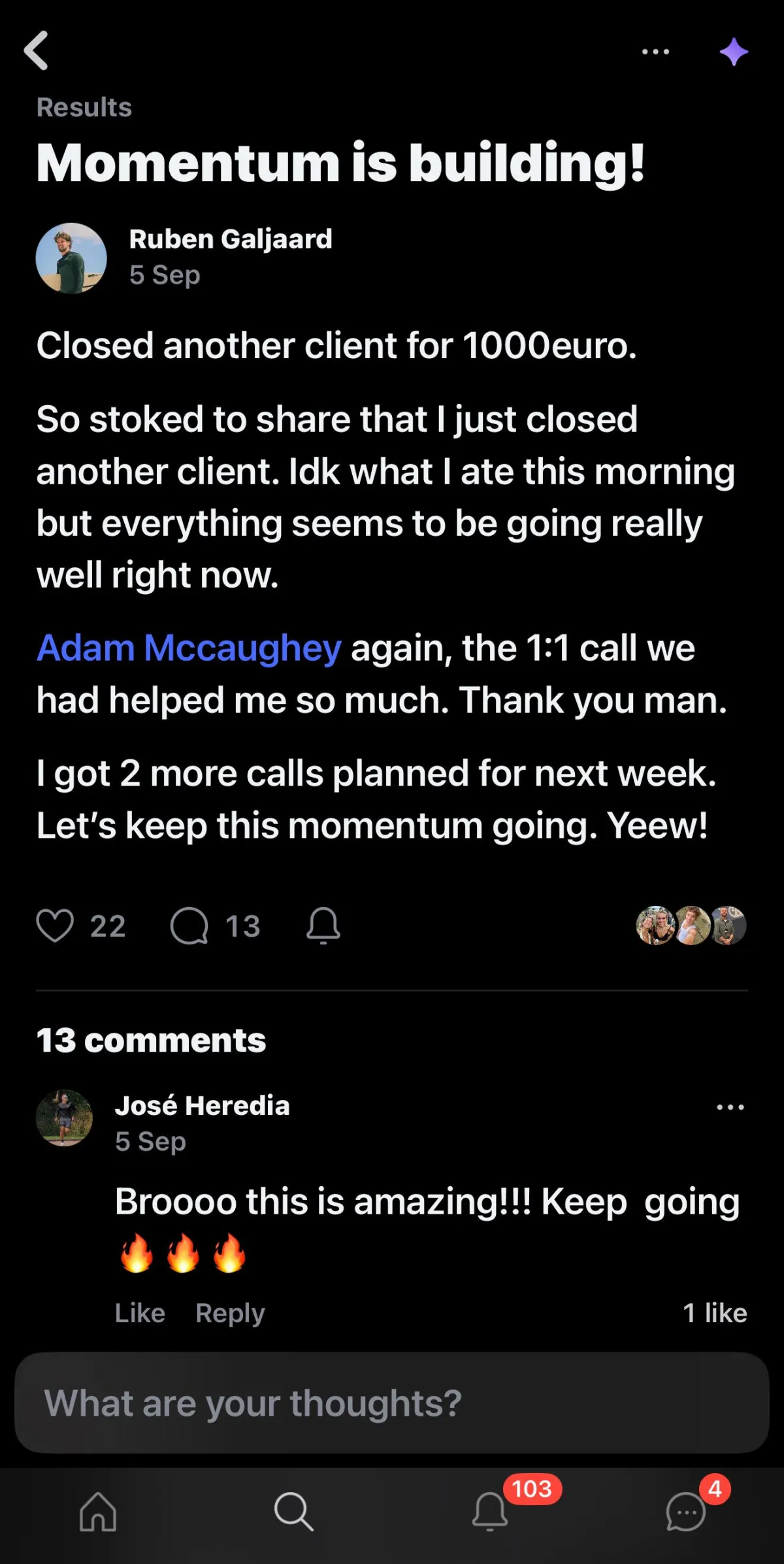 I found the community really inspiring, and investing in it pushed me to take things more seriously. Seeing other people’s results keeps me consistent, and there’s no reason not to succeed with all these resources. I realised I just have to start before I’m ready and follow a clear, strategic approach.