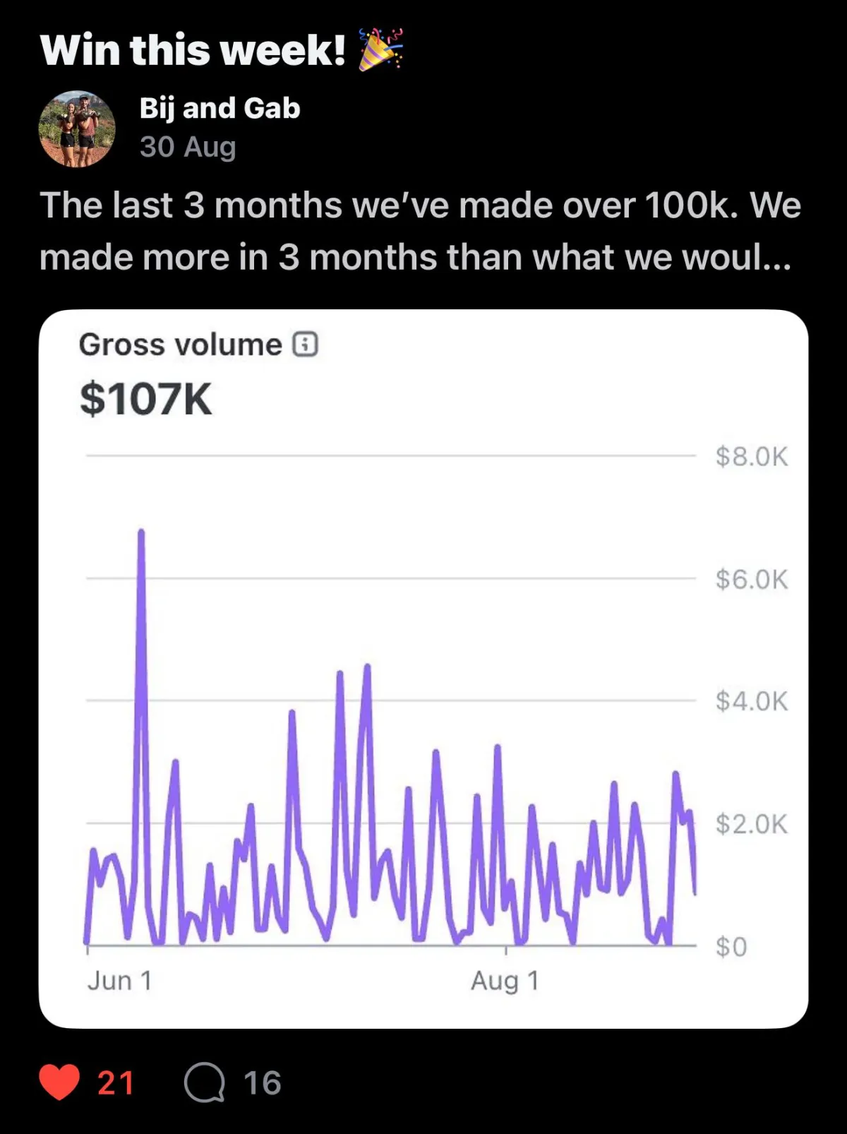"About to go full time thanks to you. Hit $13K in 2 months of joining amplify, at 2500 followers, starting from zero"