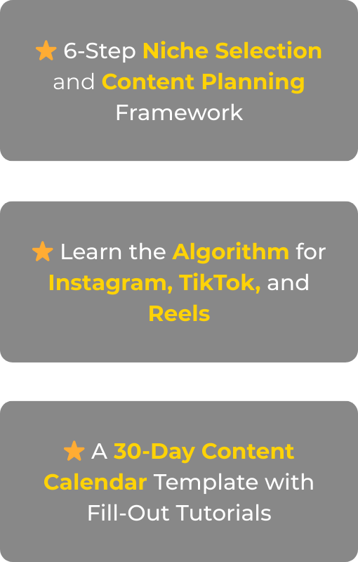 The Content Playbook is the fastest way to get a step-by-step content strategy, tailored to your niche without stressing on what to post next.